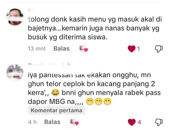 Keluhan pertama muncul pada menu olahan nugget yang dibagikan di awal pelaksanaan MBG. Sejumlah siswa menolak mengonsumsi makanan tersebut karena bau tidak sedap.