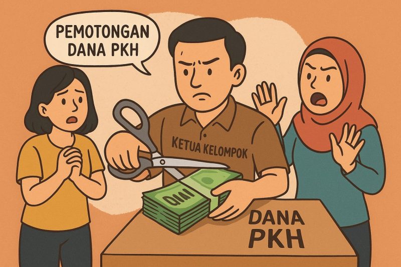 Oknum ketua dari PKH ini menggunakan posisinya untuk memuluskan niat buruknya, bantuan yang seharusnya diterima utuh oleh keluarga miskin justru berkurang hingga jutaan rupiah.