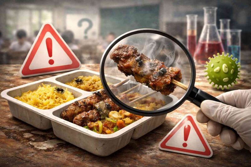 Salah satu wali murid mengeluhkan sate yang tercium basi serta kualitas nasi yang dinilai jauh dari standar.