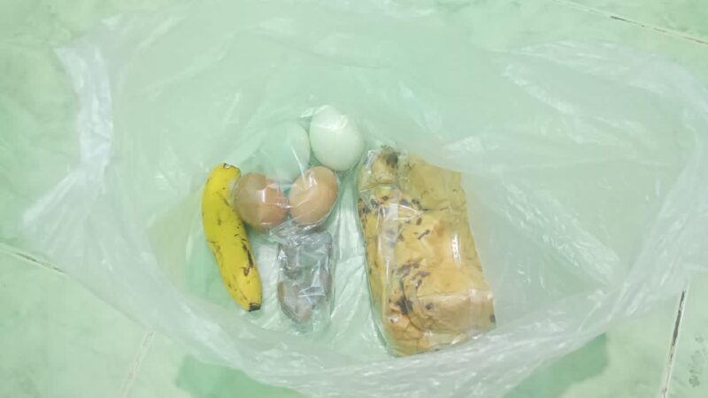 Selama tiga hari terakhir, siswa hanya menerima paket berisi satu buah pisang, empat butir telur, empat biji kurma, dan satu roti dalam kantong plastik.