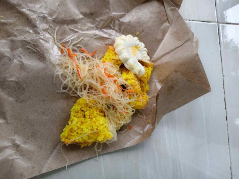 Berdasarkan informasi yang dihimpun, menu MBG yang dibagikan pada 8 April 2026 berupa nasi kuning, mi hun dengan campuran wortel, serta telur mata sapi dalam kondisi berbau. Sejumlah siswa memilih tidak mengonsumsi makanan tersebut dan membawanya pulang.