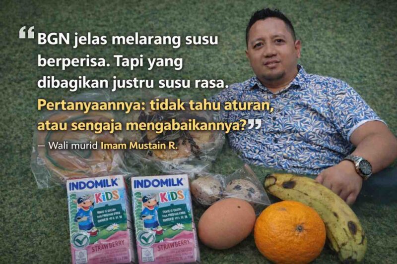Imam juga menilai penggunaan susu rasa mengindikasikan potensi penekanan biaya yang mengorbankan kualitas. “Susu full cream jelas lebih mahal. Kalau diganti susu rasa, ini patut dicurigai. Apakah ini soal efisiensi, atau ada permainan dalam pengadaan?” sindirnya.
