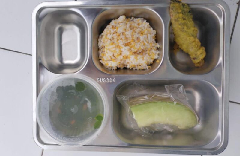 Foto menu yang beredar memperlihatkan sajian sederhana: nasi jagung, sepotong ikan krispi berbalut tepung, kuah kelor dalam wadah plastik, dan potongan buah. Tampilan itu sontak menuai pertanyaan besar soal mutu dan standar gizi.